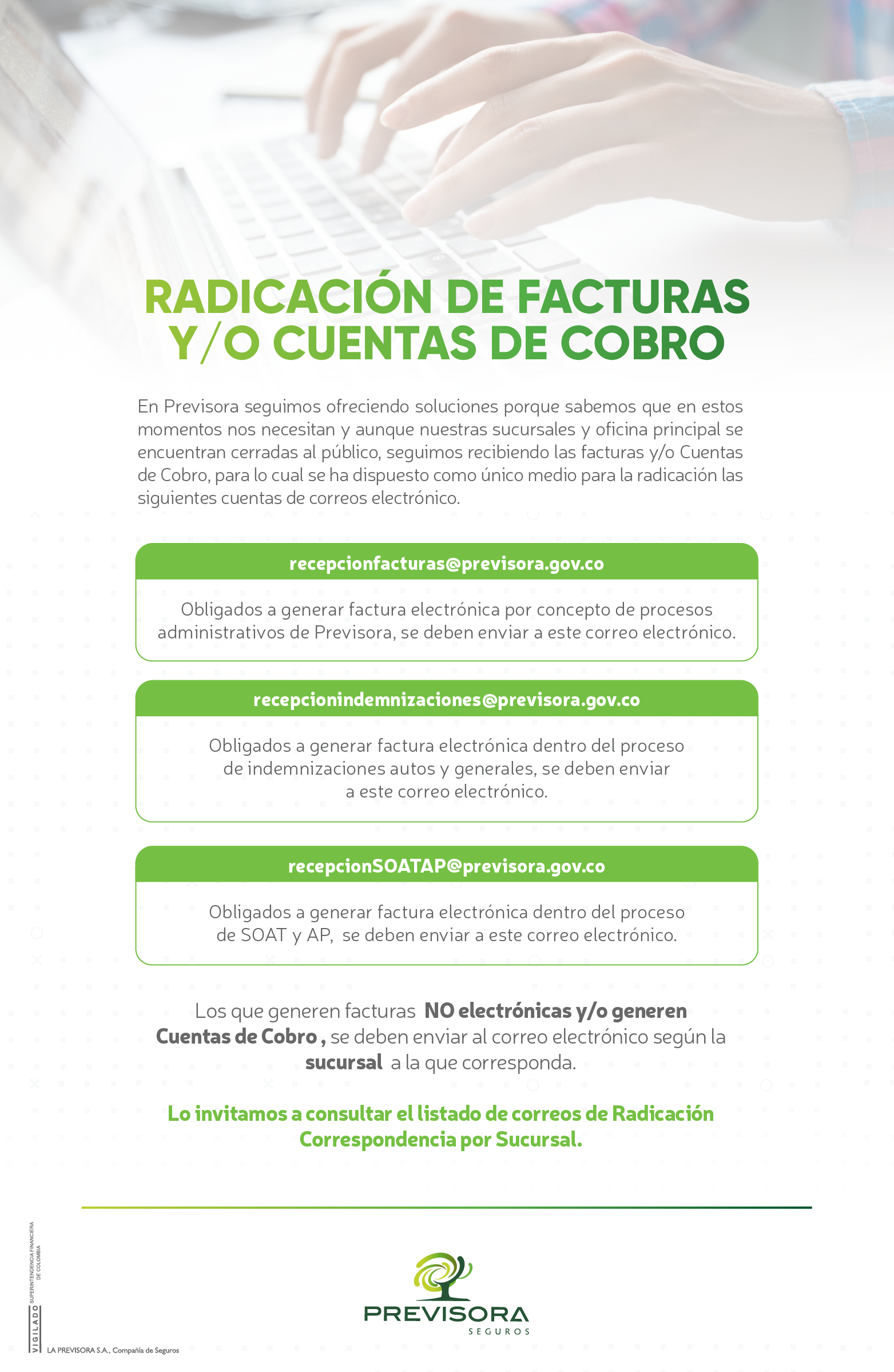 - Radicación de facturas desde y/o cuentas de cobro