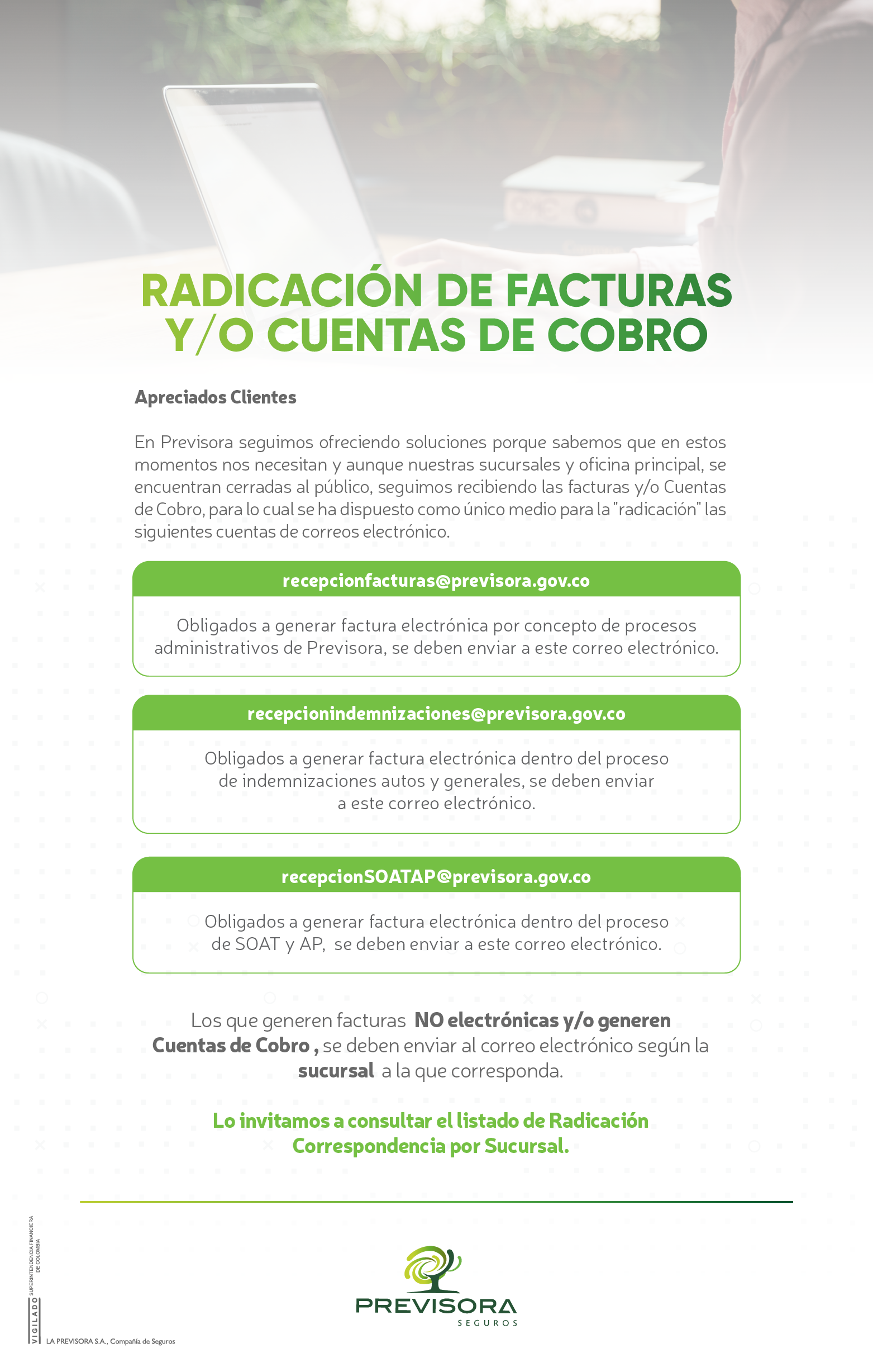 - Radicación de facturas desde y/o cuentas de cobro