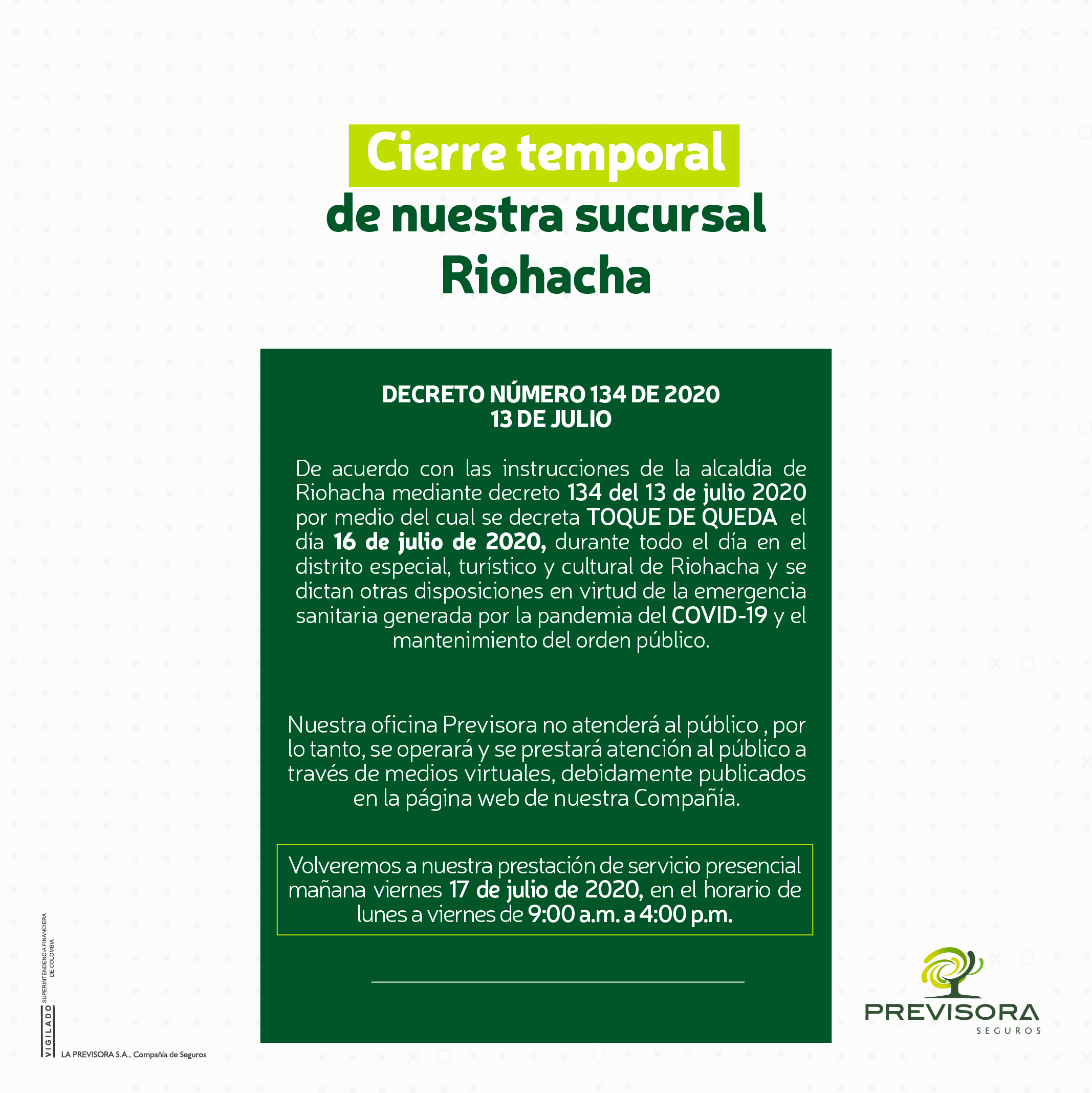 - Cierre temporal sucursal Riohacha